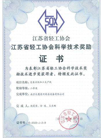 拥有自主知识产权的创新项目《无菌米饭生产线》获中国轻工业联合会科学技术进步奖三等奖。